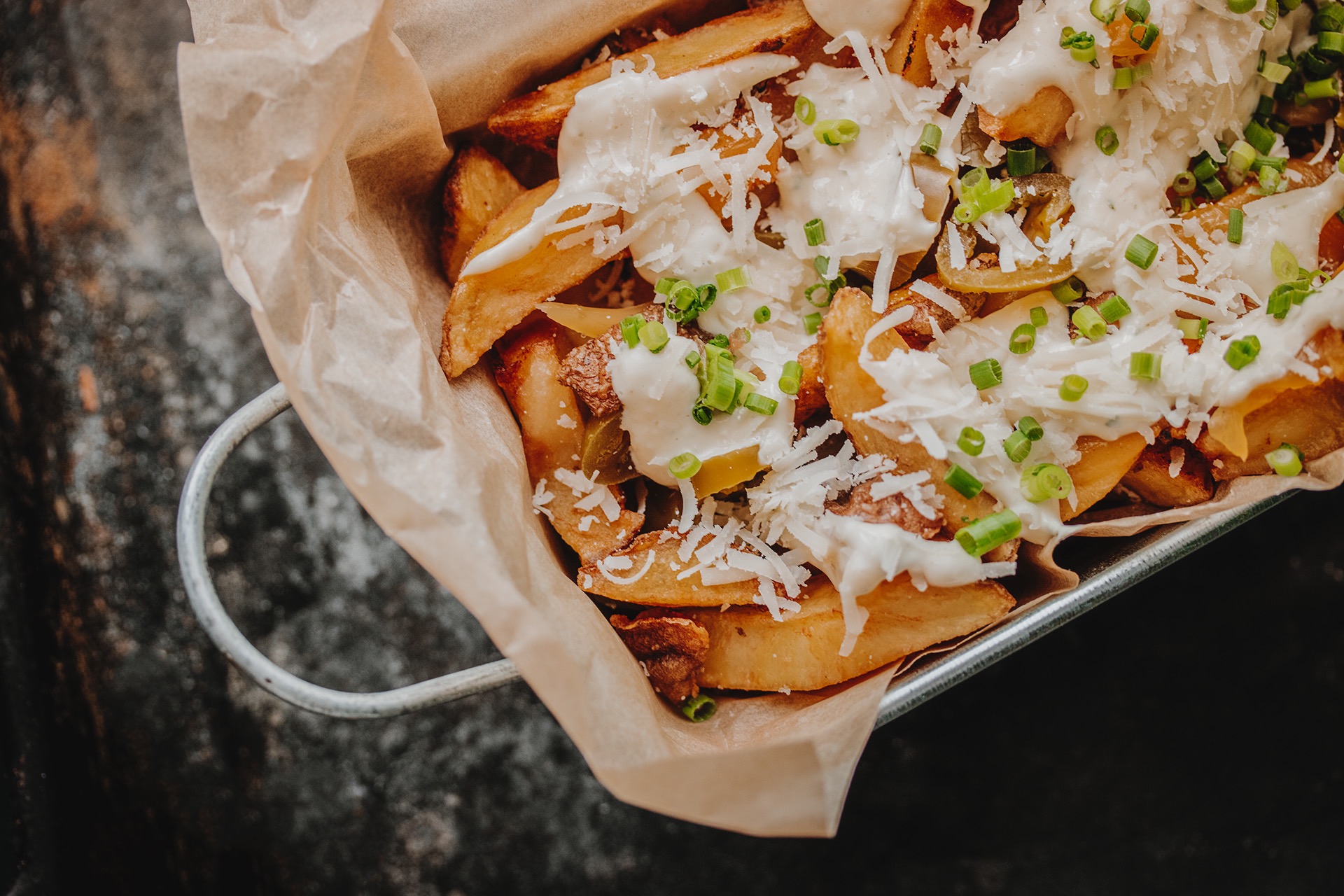 fryteczki, panierowany ser gouda, sos tatarski, koperek, szczypiorek -
