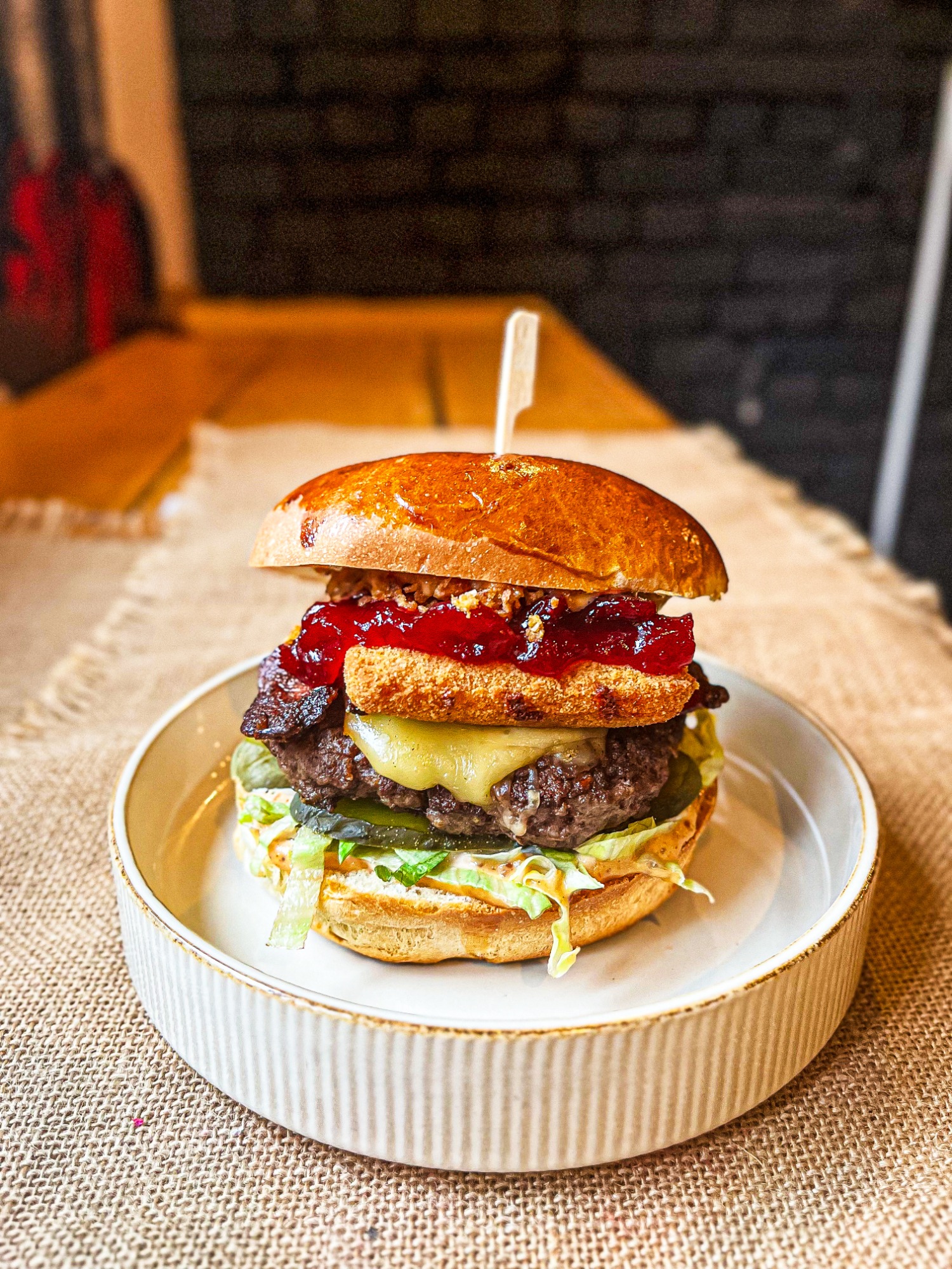 wołowina 200g, ser halloumi, ogórek zielony, rukola, cebula czerwona, oliwki -
